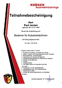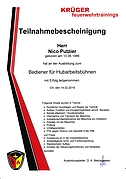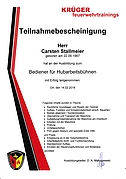 Am 14.02.2018 führten wir mit 7 Monteuren eine Schulung für die Bedienung von Hubarbeitsbühnen durch. Nach der Vermittlung der erforderlichen thoretischen Kenntnisse wurden auch die richtige Nutzung der Absturzsicherung vermittelt. Im Anschluss wurden praktische Übungen mit einer LKW-Hubarbeitsbühne durchgeführt. Die 1-tägige Schulung wurde erfolgreich mit Krüger-Feuerwehrtrainings durchgeführt.